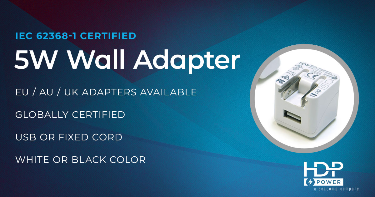 Power your device with our 5W global ITE power adapter by HDP Power. The Qb (pronounced as cube) offers a compact size, foldable US blades, and quality feel to complement any product design. The Qb wall charger meets many standards such as CEC VI efficiency standard and IEC 62368 1 safety standard. Optional AC adapters are available for Europe, United Kingdom, Australia, and Korea marketplaces.